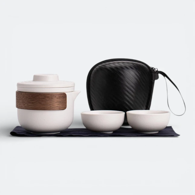 | Features | • Compact tea set with teapot and matching cups • Built-in filter for convenient tea brewing • Portable design with protective carrying case • Minimalist ceramic finish for a premium look • Suitable for travel, office or gifting use • Ideal for corporate branding and lifestyle promotions |