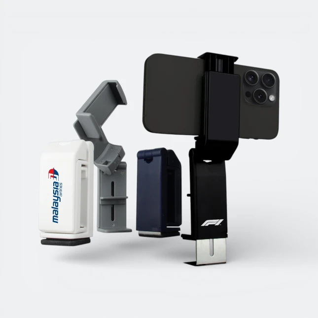 Fido Phone Holder is a compact adjustable smartphone stand designed for hands-free viewing at desks, workstations, or meeting tables. The modern foldable structure combined with a sturdy desk clip allows devices to be positioned securely while saving valuable workspace. Its lightweight and portable design makes it ideal for office use, video calls, mobile viewing, and corporate promotional tech accessories.