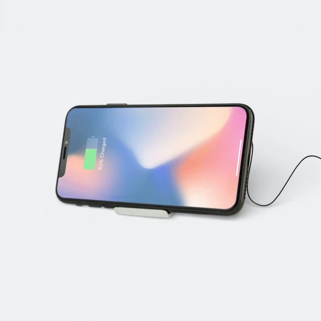 Iddly Wireless Chargepad is a modern wireless charging stand designed for convenient smartphone charging while keeping your device easily viewable. The compact horizontal charging surface allows phones to rest securely while powering up without cables. Its clean minimalist appearance makes it suitable for desks, offices, bedside tables, and corporate technology gifts.