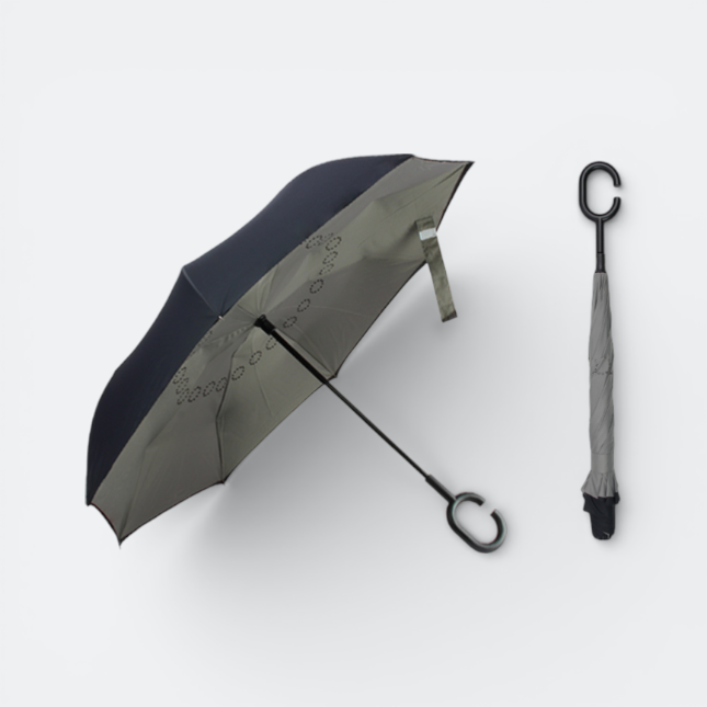 The 24″ Inverted Windproof Umbrella features a smart reverse-opening design that keeps the wet surface folded inward when closed. This practical structure helps prevent water from dripping onto floors, clothes, or car interiors, making it especially suitable for daily commuting and urban use.