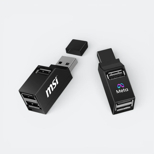 | Features | • USB hub with multiple USB 2.0 ports • Supports data transfer up to 480Mbps • Compact lightweight portable design • Integrated strap for easy carrying • Ideal for laptop connectivity expansion • Suitable for promotional tech branding |
