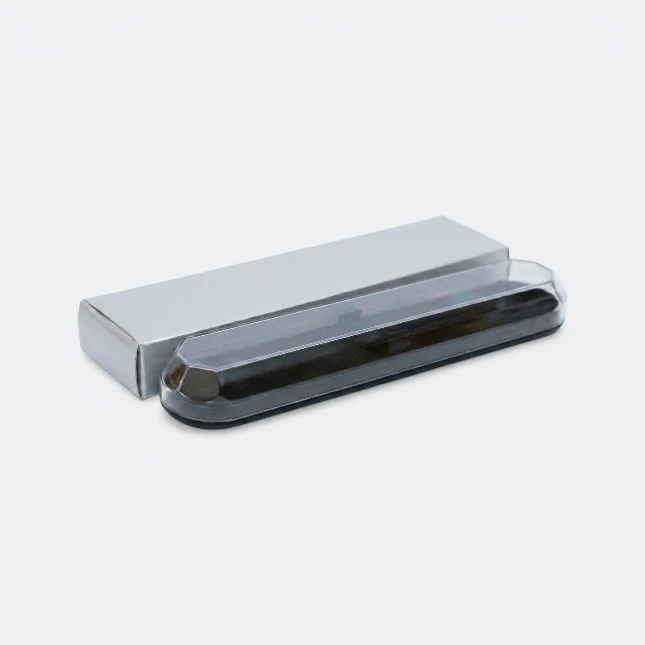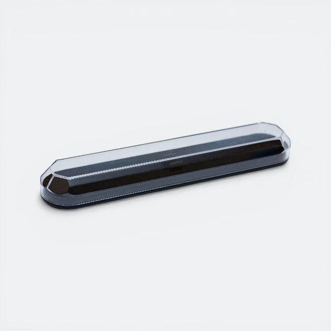 Orbit Pen Box is a modern pen box designed for neat single-pen presentation and eye-catching product display. Its slim faceted shape, black base and clear top cover create a clean contemporary look that is suitable for branded stationery packaging, promotional giveaways and logo presentation in Malaysia.